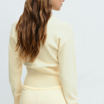 Le haut légèrement raccourci est subtilement structuré pour sublimer le buste. Il souligne la taille avec élégance et crée une allure moderne et naturelle, esprit « chic sans effort ».