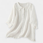 Les stocks sont très limités et partent rapidement. Si le bouton « Ajouter au panier » est encore visible, le produit est toujours disponible..Une chemise ludique confectionnée dans un mélange léger de coton et de lin, alliant élégance et confort. Son col Claudine à volants apporte une touche d'originalité qui rehausse toutes les tenues décontractées, idéale avec une jupe ou un pantalon.