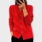 Ce cardigan, confectionné dans un tissu épais et doux, offre confort et style classique. Grâce à sa couleur unie et son décolleté en V profond, il s'accorde facilement avec des vêtements basiques, des chemises ou des robes.