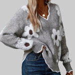 CLARA - PULL FLEURI À COL EN V FLATTEUR