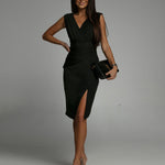 Vaela – Robe midi flatteuse à décolleté en V et fente