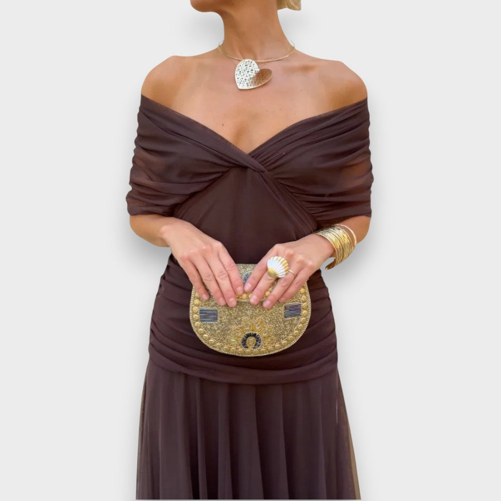 Une robe de rêve, confectionnée dans un tissu délicat et fluide, qui transforme chaque apparition en un moment inoubliable. Son design exceptionnel, avec ses épaules bouffantes et ses charmants volants au niveau du buste, sublime la féminité. Les manches élégamment coupées et la jupe plissée et fluide confèrent à la robe une touche de romantisme et d'élégance. Mariage, dîner d'affaires ou soirée de gala : avec cette robe, vous serez au centre de toutes les attentions. Elle incarne l'élégance moderne à l'état pur.