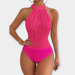 Élégant et saisissant, ce maillot de bain une pièce rose vif, avec son décolleté et ses fronces subtiles, met en valeur la féminité avec style. Parfait pour la plage ou la piscine, il offre une coupe flatteuse et un confort optimal tout au long de la journée.